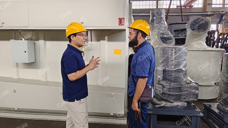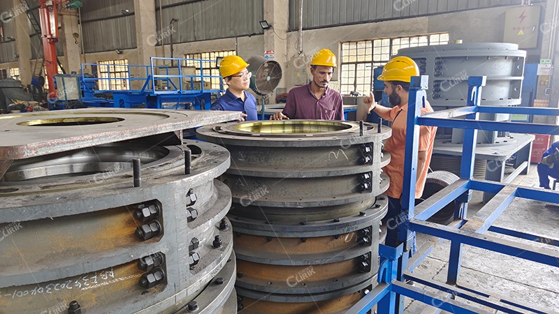 展廳參觀之后,朱經(jīng)理又帶領(lǐng)客戶來到我們的磨粉機生產(chǎn)車間,以磨輥和磨環(huán)為例,向客戶詳細(xì)介紹了超細(xì)磨粉機的易損件都有哪些,以及易損件的保養(yǎng)維護方法和使用技巧是什么。