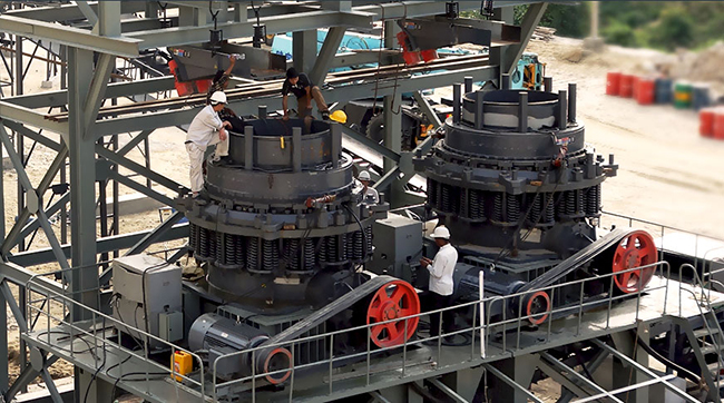二次破碎設(shè)備,即破碎設(shè)備,一般選圓錐式破碎機(jī)、反擊式破碎機(jī)、沖擊式破碎機(jī)等設(shè)備。選擇這些作為破碎設(shè)備的主要原因是這些設(shè)備可以加工更細(xì)的粒度,擠壓或沖擊破破碎可以破碎出更加整齊、立體、粒度均勻、級(jí)配良好的成品。